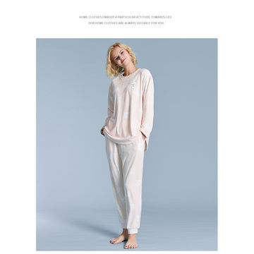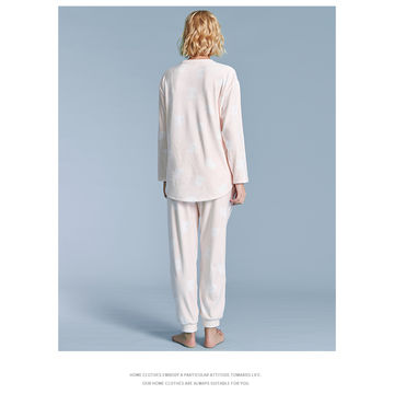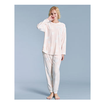 Women Wearing In Autumn Winter Printed Super Soft Spandex Pajamas Set With Long Sleeve - Pink
