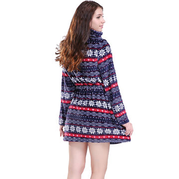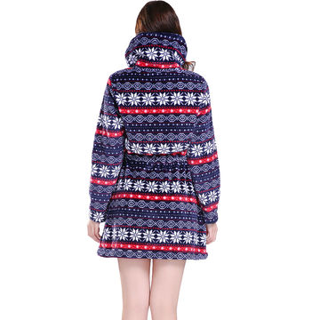 Fashion Coral Fleece Zipper Long Christmas Winter Warm Long Blouse for Women - Blue