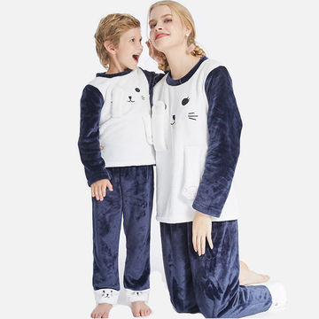 Parenting 2 Pieces Flannel Fleece Animal Embroidery Homewear Pajamas Set