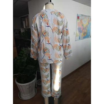Ladies Spring Summer Cotton Printed Short Sleeve Sleepwear Pajamas Set for Women