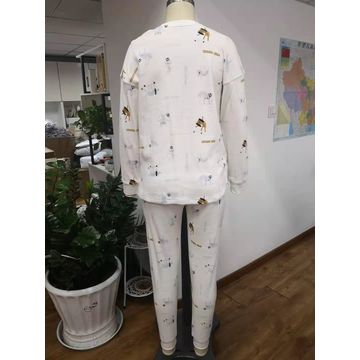 Ladies Spring Summer Cotton Printed Short Sleeve Sleepwear Pajamas Set for Women