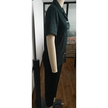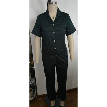 Ladies Solid Color Satin Drill Short Sleeve Pajamas Set