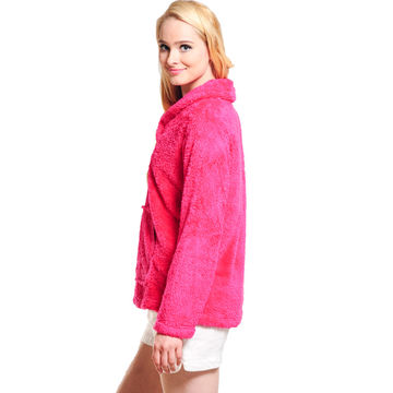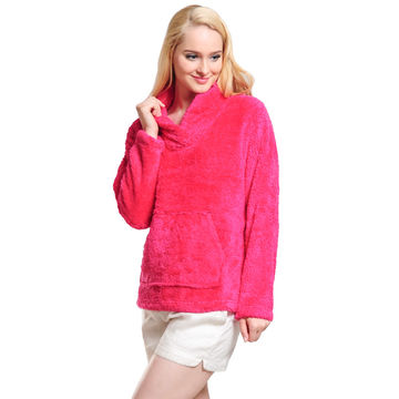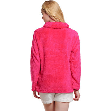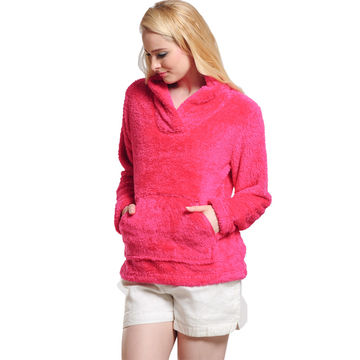 Fluffy Fleece Winter Warm Pullover Shawl Collar Hoodie Sweatshirt Blouse for Women Girls - Rose Red