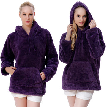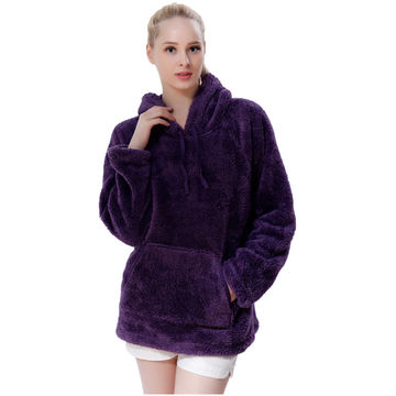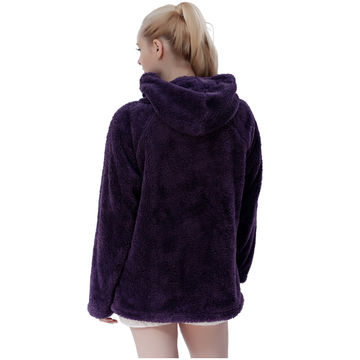 Fluffy Fleece Winter Warm Pullover Shawl Collar Hoodie Sweatshirt Blouse for Women Girls - Purple