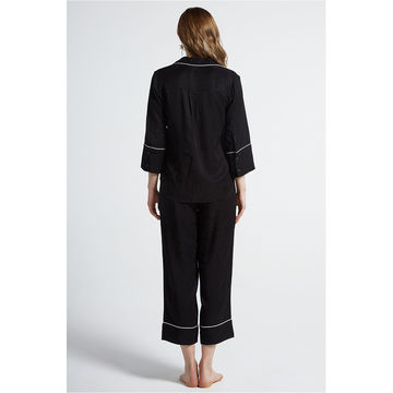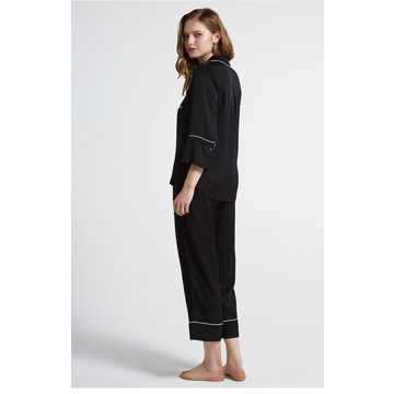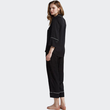 Ladies Spring Summer Solid Color Viscose Long Sleeve Pajamas Set