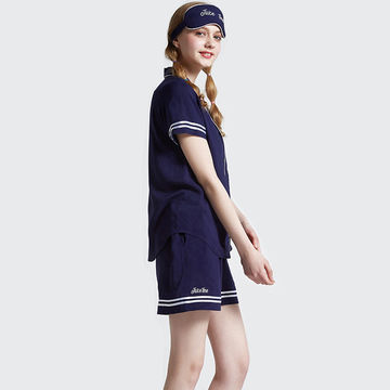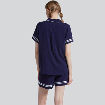 Ladies Spring Summer Solid Color Viscose Short Sleeve Shorts Pajamas Set