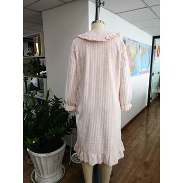 Women Wearing In Autumn Winter Stripe Fannel Fleece Robes With Long Sleeve
