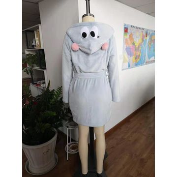 Women Wearing In Autumn Solid Color Flannel Fleece Bath Robe With Embroidery