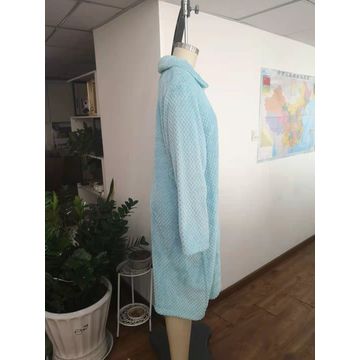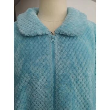 Winter Warm Soft Comb Coral Fleece Bath Robe With Zipper For Women