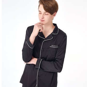 Men's Satin Sleepwear Solid Two Pieces Pajamas Set for Adult