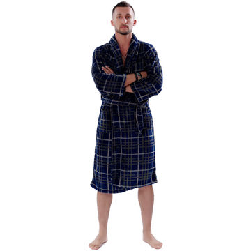 Men's soft printed coral fleece long bathrobe sleepwear nightgown for men