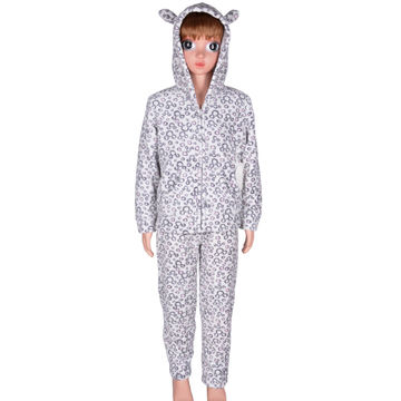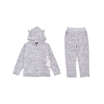 Winter Warm Printed Leopaid Coral Fleece Pajamas Set With Bear Embroidery For Girls
